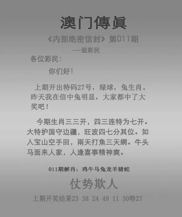 011期澳门信封挂牌:各一姿状分(卯时上下)加1659